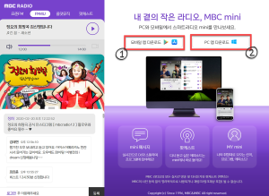 위 링크를 클릭을 하시면 MBC 라디오를 웹에서 들을수 있는 페이지로 들어가실 수 있습니다. 또한 옆에 보면 모바일 앱을 다운로드 할 수 있는 링크가 있습니다.