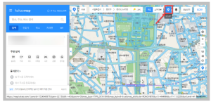 카카오 맵을 들어가서 제가 화면에 표시한 것처럼 로드뷰를 클릭하면 다음 로드뷰를 확인할 수 있습니다. 개인적으로 다음 로드뷰를 선호하는 편인데 로드뷰 서비스들 중에서도 가장 고화질을 자랑한다고 느꼈습니다. 이후 보고싶은 위치를 클릭하면 거리뷰를 확인할 수 있습니다.