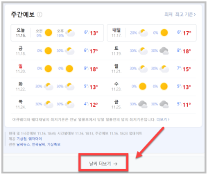 위 링크를 통해 네이버 날씨에서 지난 상태를 확인할 수 있습니다. ‘더보기’를 클릭하면 더 과거의 예보를 달력을 통해 찾아볼 수 있습니다.
