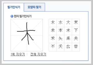 우리나라 대표 포털이라고 할 수 있는 NAVER와 DAUM에서는 사전 기능이 아주 훌륭합니다. 그중 Daum의 경우에는 필기인식 방법과 요소검색을 통해 한자를 찾을 수 있습니다.