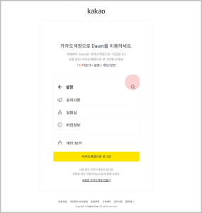 Daum과 Kakao가 합병하면서 이제는 메일 주소를 만들려면 kakao 아이디가 필요합니다. 예전에는 회원가입만 하면 되었지만, 현재는 카카오로 로그인을 먼저 요구하고 있습니다. 다행히 우리나라 대부분 사람들은 카톡을 이용하고 있기에 어렵지 않을거라고 생각합니다.