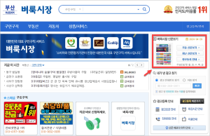 홈페이지에 들어가면 이러한 화면이 나오게 됩니다. 우측에 보시면 부산벼룩시장 신문그대로보기가 가능하도록되어 있습니다. 이북 형태로 되어 있습니다.