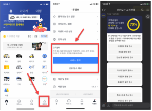 카카오티 앱에서 ‘내정보’를 터치하고 ‘서비스문의’ 영역을 찾아 터치하면, 카카오톡으로 연결되어 챗봇을 통한 상담이 시작됩니다. 여기서 문의하고자 하는 내용을 입력하면 됩니다. 환불 요청 시 필요한 서류로는 영수증, 홈페이지 내역, 승인 문자 중 하나를 제출하면, 담당자가 이를 확인 후 처리합니다.