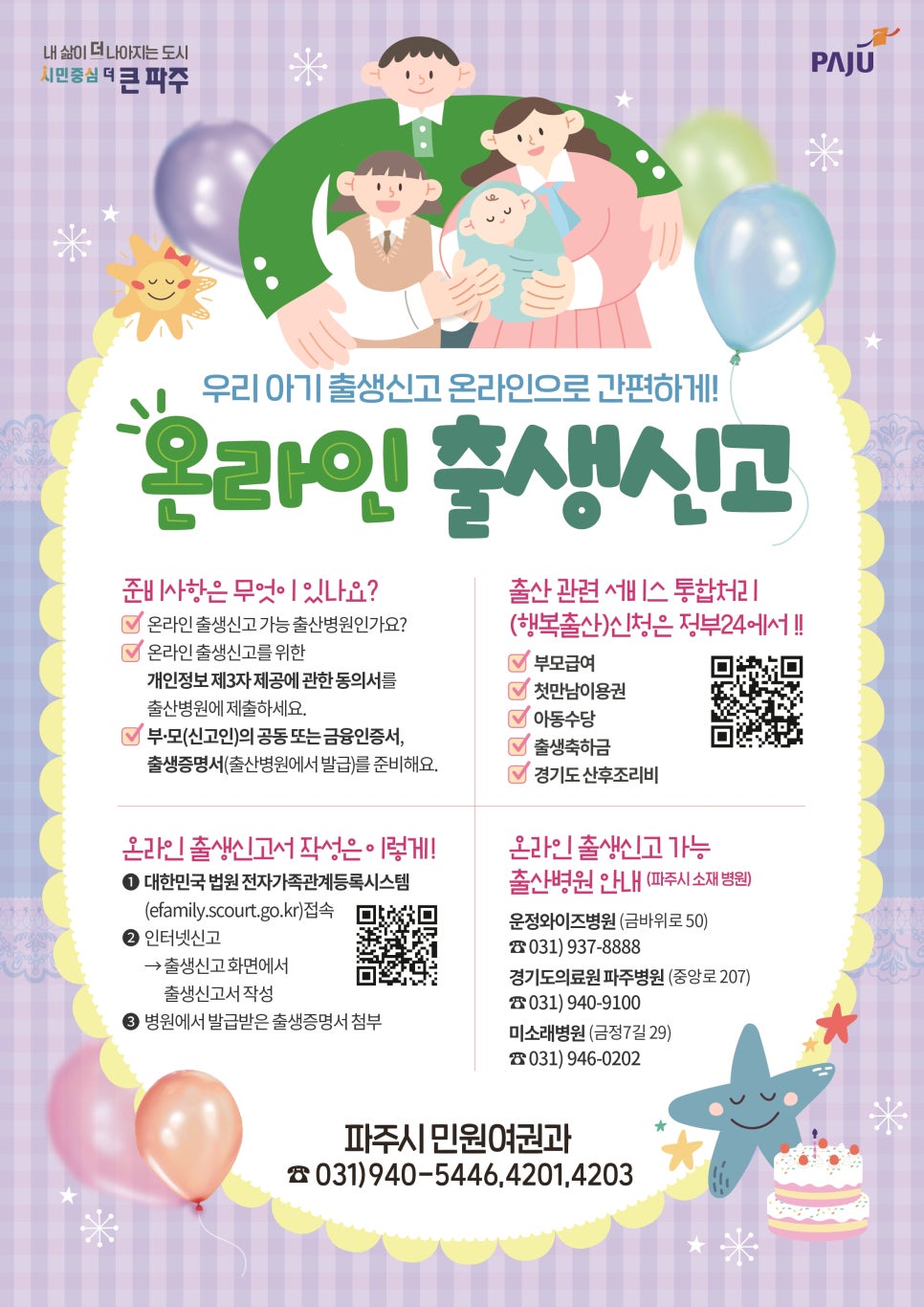 - 출생신고서: 시·구청이나 읍·면 사무소에 비치되어 있거나 대법원 전자 가족관계등록시스템에서 미리 다운로드하여 작성할 수 있다. 현장 제출 시에는 서류를 미리 작성해 가져오는 것이 편리하다.
